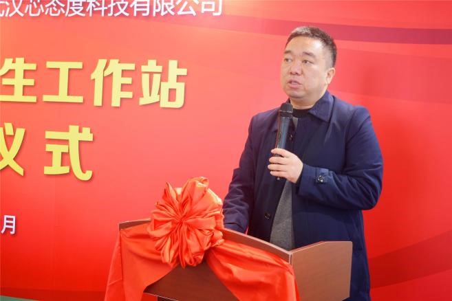 武汉芯态度科技有限公司总经理罗浩致欢迎辞,向与会人员介绍了公司的发展历程和主营业务,期待以湖北省研究生工作站挂牌为契机,依托科研载体,在人才培养、人工智能科创教育、智能教育环境、智能学习过程支持、智能教育评价、智能教师助理等科研领域广泛开展合作,实现资源共享、成果共创。