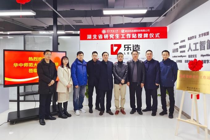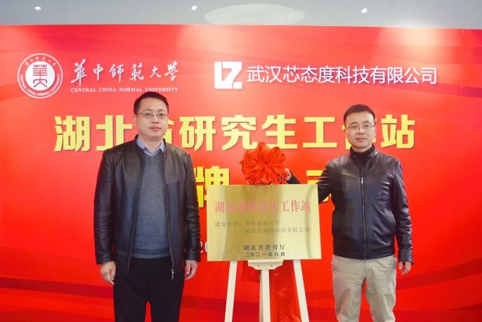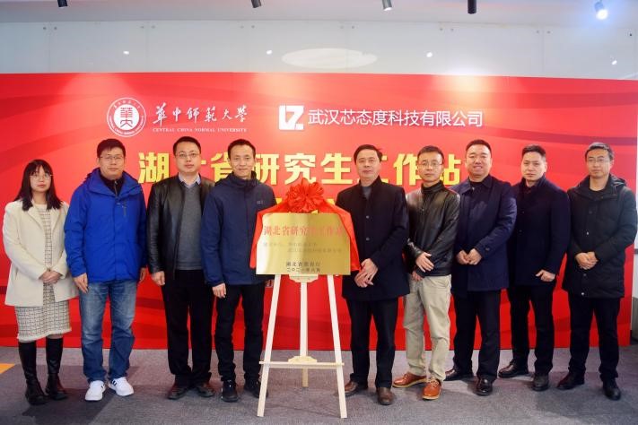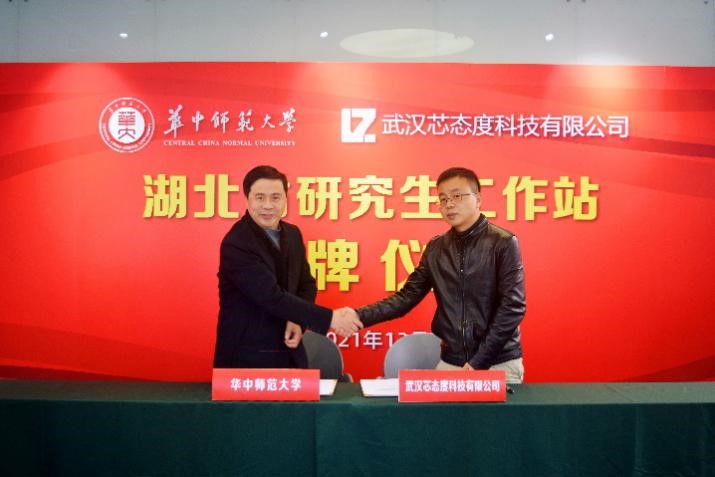 12月21日上午,华中师范大学与武汉芯态度科技有限公司联合共建的湖北省研究生工作站授牌仪式在武汉芯态度科技有限公司隆重举行。我校人工智能教育学部副部长、教育信息技术学院院长刘清堂,研究生院副院长张舜,科技处副处长吴成峡,教育信息技术学院副院长童名文,湖北省教育信息化研究中心副主任魏艳涛,人工智能教育学部副教授邓伟,武汉芯态度科技有限公司总经理罗浩、联合创始人蔡琪、蔡德勇等出席仪式,我校研究生代表刘金典随行参加仪式。