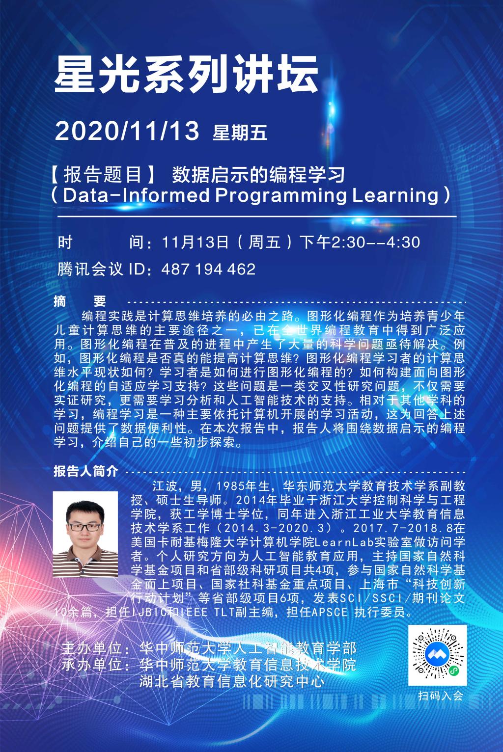 【主讲】江波,华东师范大学,教育技术学系,副教授、硕士生导师