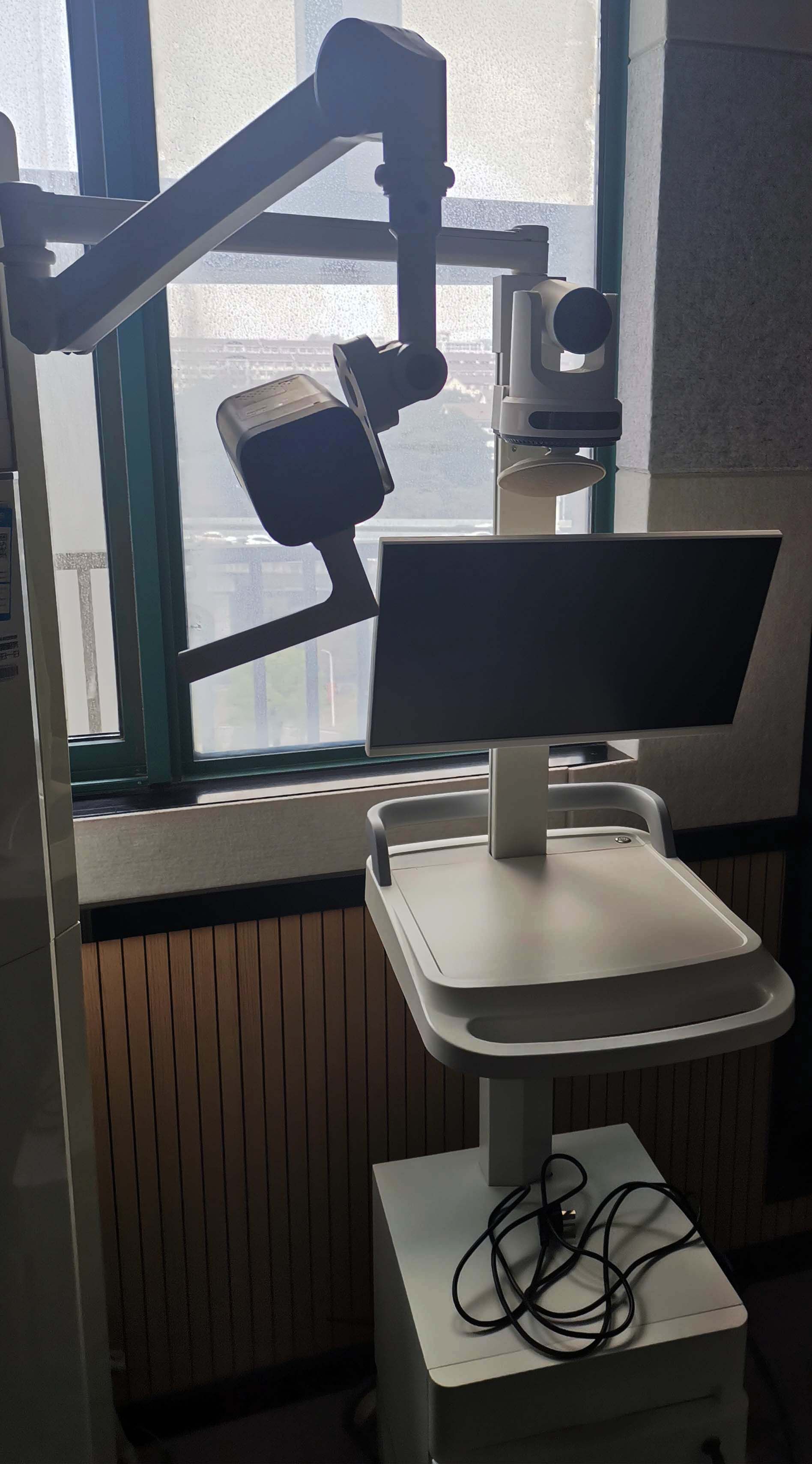 采用嵌入式架构,内置15.6英寸触控液晶屏,由智课终端、实训录播分析软件、特写摄像机、全景摄像机、数字阵列拾音系统、实训教学推车等设备组成。